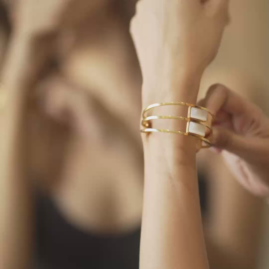Twin Glimmer Rectangular white inlay Bracelet JLTB0648
