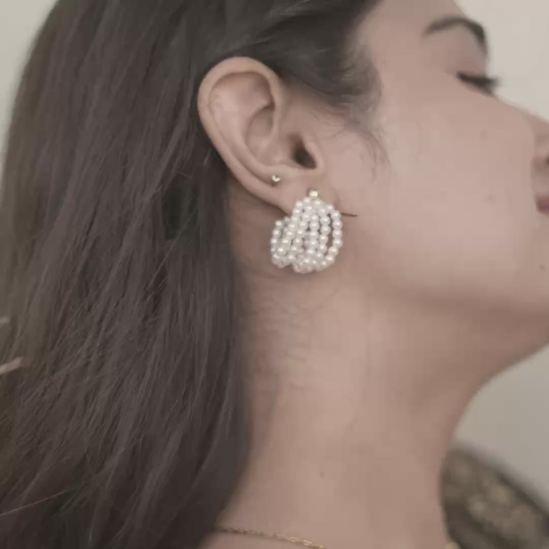 Statement Clustered Pearl Hoop Earrings jlt11768